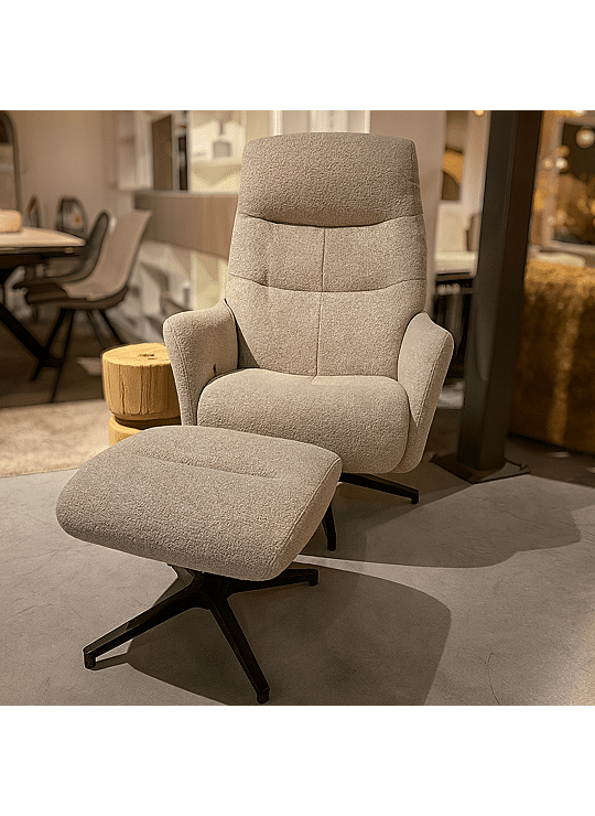 Ervaar ultiem relaxen met Lennon, onze stijlvolle manuele relaxfauteuil met bijpassende poef. Verkrijgbaar in twee moderne kleuren en perfect voor elke woonkamer.
