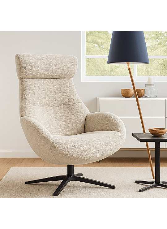 Ontspan in stijl met de Globe Relax. Deze comfortabele relaxstoel in beige stof combineert modern design met pure ontspanning.