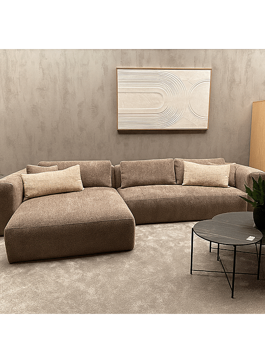 Stijlvolle en comfortabele sofa in de stof Retro Bliss, met longchair links en 3-zit met armleuning rechts. Met royale afmetingen van 340 x 170 cm biedt NOA volop ruimte om te ontspannen.